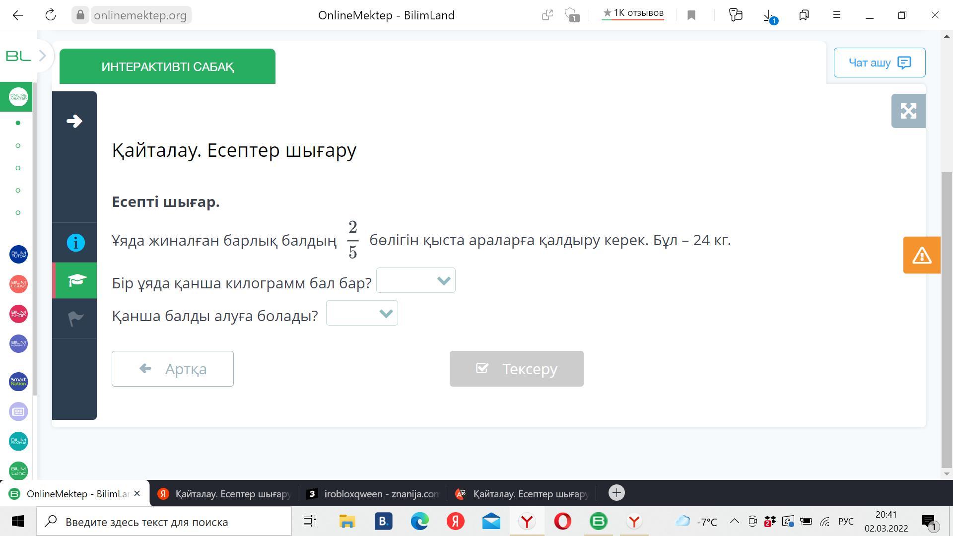 Бір ұяда қанша килограмм бал бар? (60 кг,90 кг)