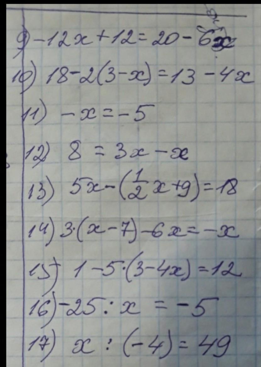 9) -12х+12=20-6х;