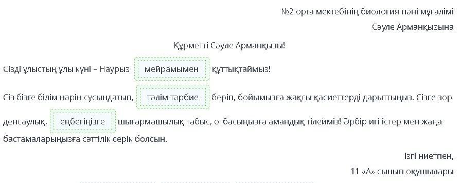Құрметті Сәуле Арманқызы!