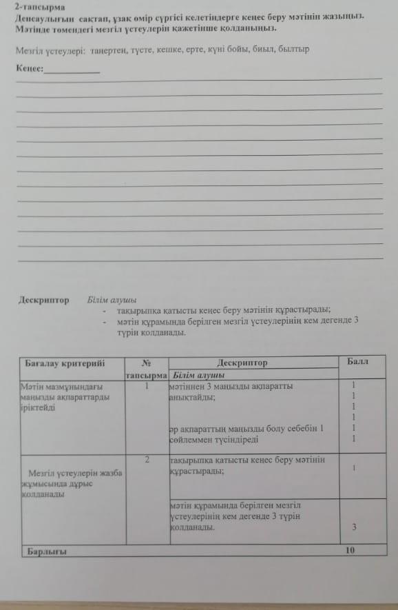 Денсаулығымызды сақтау үшін Жаттығулар жасап ешқандай ерінкетік іс жасамау керек.Денсаулығымызды күтіп үстауымыз керек мысалы таңертен ерте тұрып жүгіру,Пайдалы тағам жеу,жаттығуды дасай,гимнастикамен айналысу,велосипед тебу,түрлі жарыстарға қатысу.Менің ойымша қосымша үйірмелерге қатысып денемізді ерінбей шынықтыруымыз керек.Егер қолымнан келмейді істей алмаймын деп отыра берсеніз денсаулығынзды құртып аласыз.Мен сізге айтар кеңесім егерде шынықсаныз бұлшық еттерініз қатаяды,өзініңдін сыртқы келбетініз әдемі көрікті болып тұрады.Әл сәттілік!