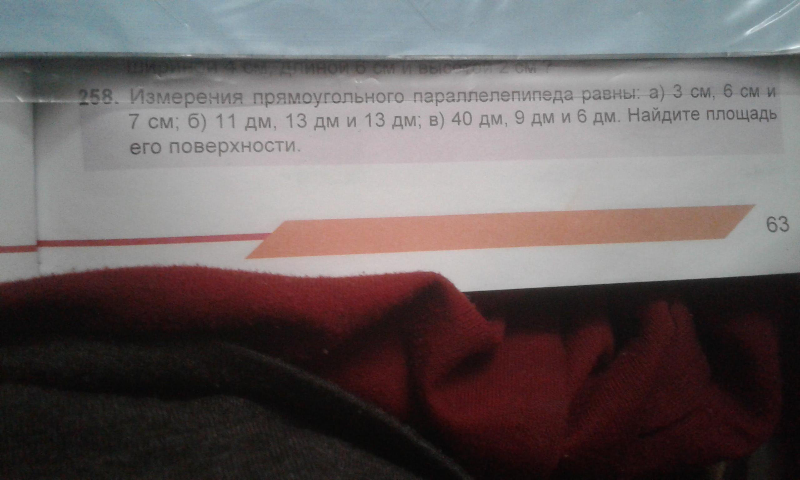 Измерения прчмоугольного параллелепипеда равены: а)3 см, 6 см, и 7 см; б)11 дм, 13 дм и 13 дм; в)40 дм, 9 дм и 6 дм. Найдите площадь его поверхности