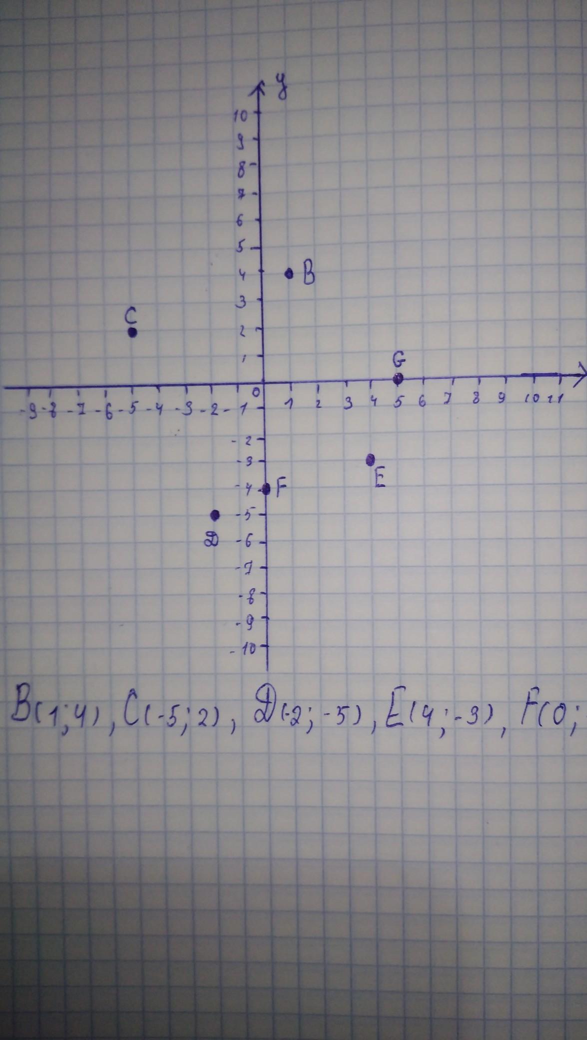каждая из точек. 2) На координатной плоскости отметьте точки В(1; 4); C(-5; 2); D(-2; -5); E(4; -3); F(0; -4); G(5; 0). 13 Изобразно