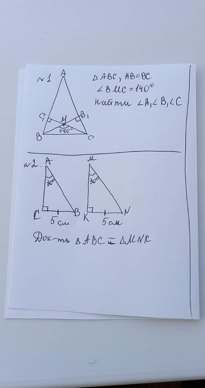 2.ΔАВС=Δ МКN по катету (СВ = КN) и прилежащему углу (∠В=∠N), что следует из того, что если в треугольниках два угла равны,(∠С=∠К ; ∠В=∠N),то равны и третьи углы.