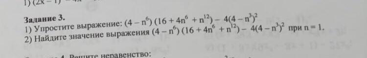 (4 - n⁶)(16 + 4n⁶ + n¹²) - 4(4 - n³)² = 4³ - (n⁶)³ - 4(16 - 8n³ + n⁶) = 64 - n¹⁸ - 64 + 32n³ - 4n⁶ = -n¹⁸ + 32n³ - 4n⁶
