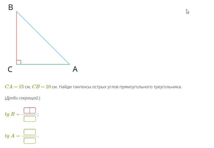 1) tg b = CA/CB = 15/10 = 3/2