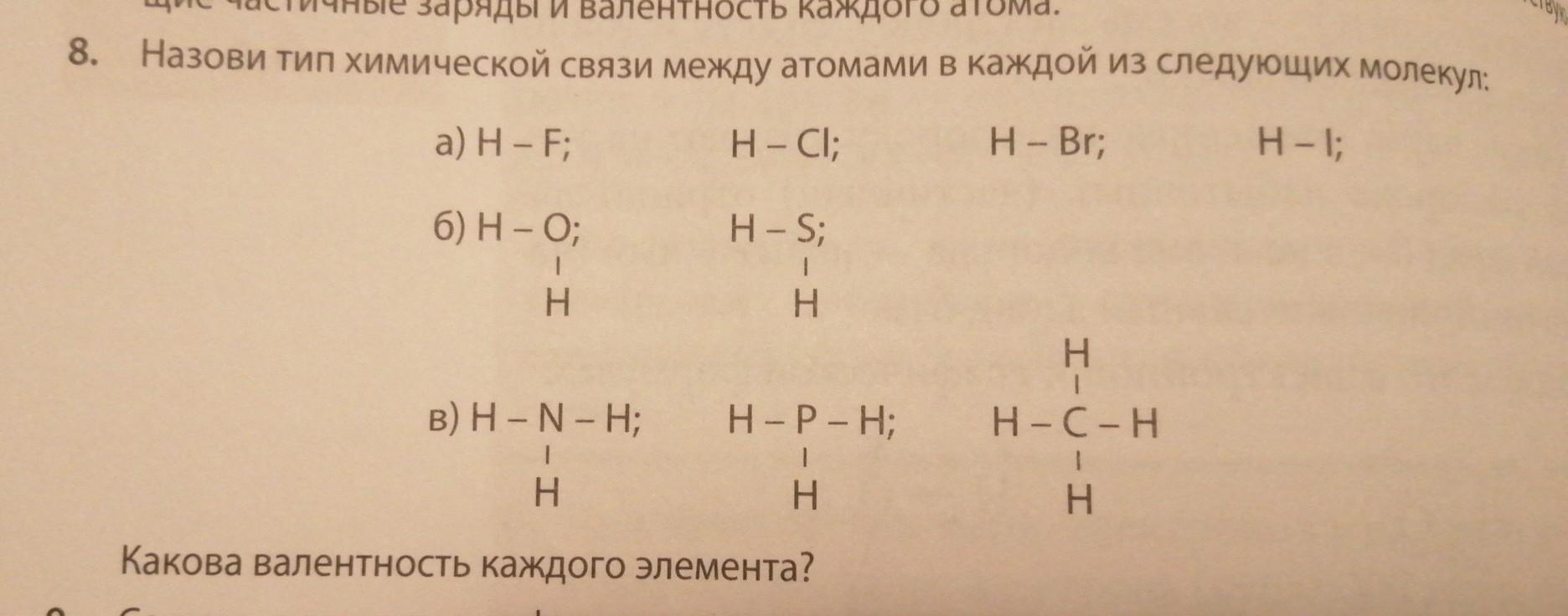 Назовите тип химической связи между атомами в каждой из следующих молекул.