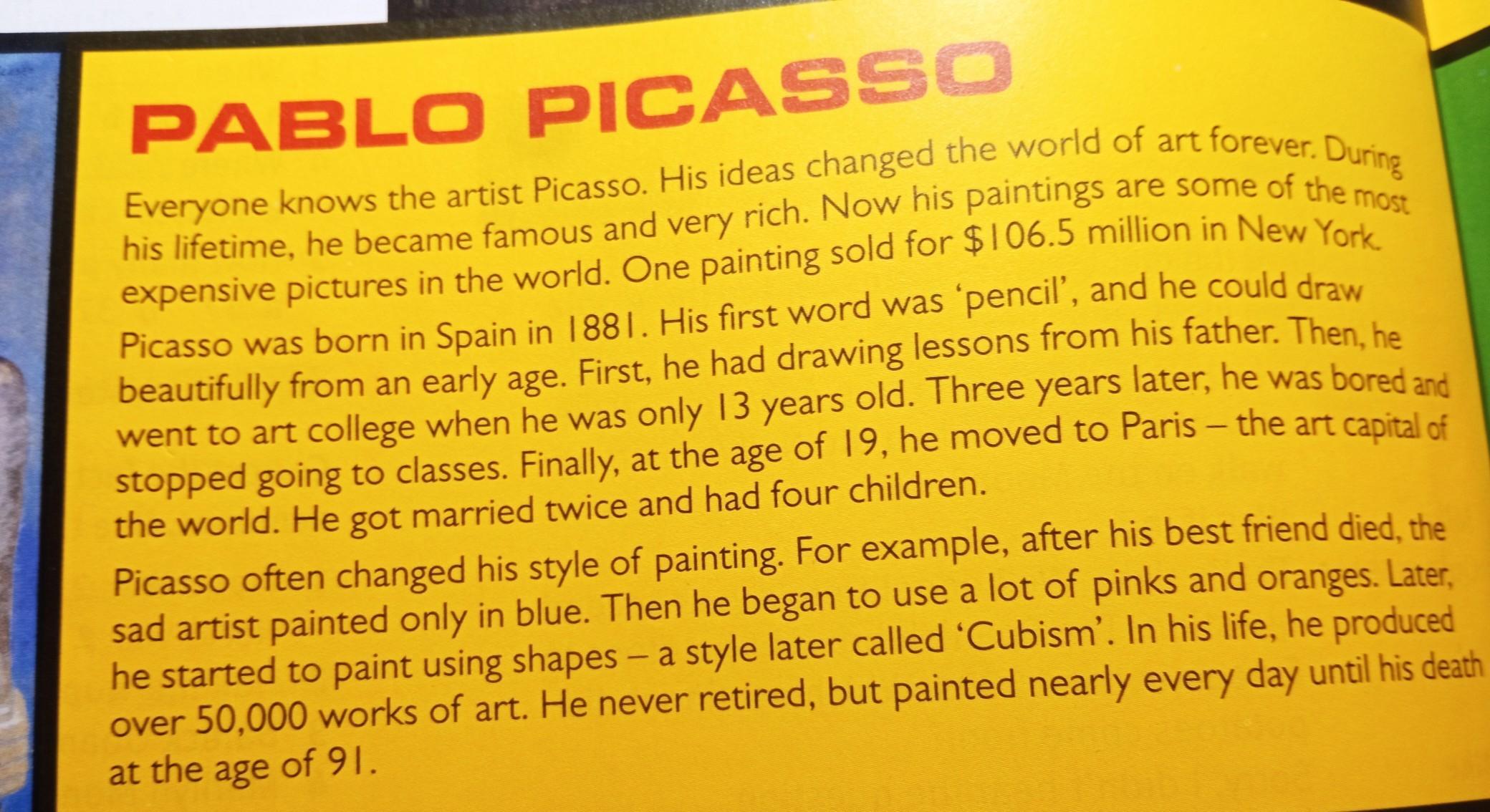 сделать краткий пересказ про жизнь и биографию Леонардо да Винчи, как на фото про Пабло Пикассо. на русском!