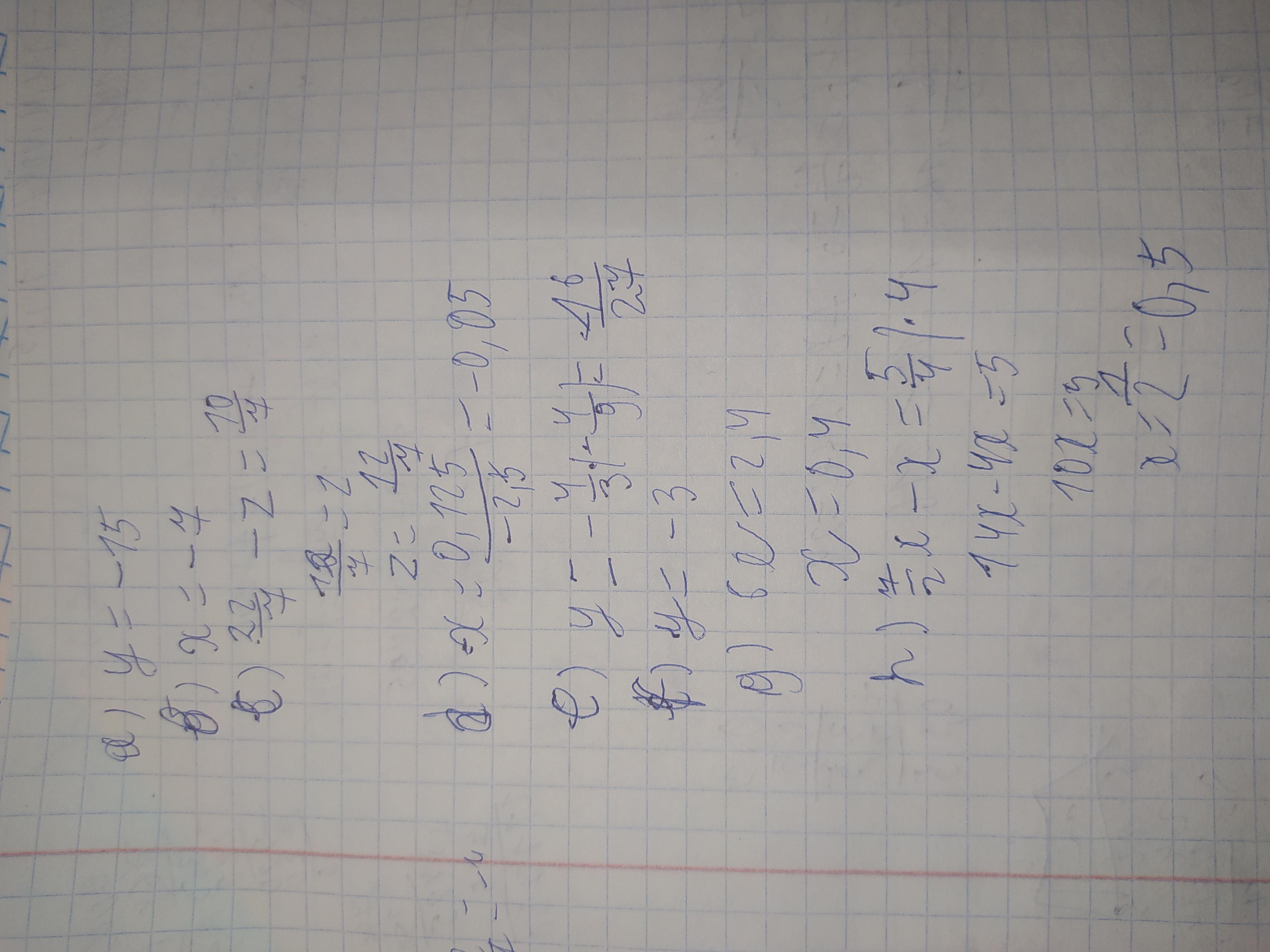 1) -15; 2) -7; 3) 12/7; 4) -0,05; 5) 16/27; 6) -3; 7) 0,4; 8) 0,5