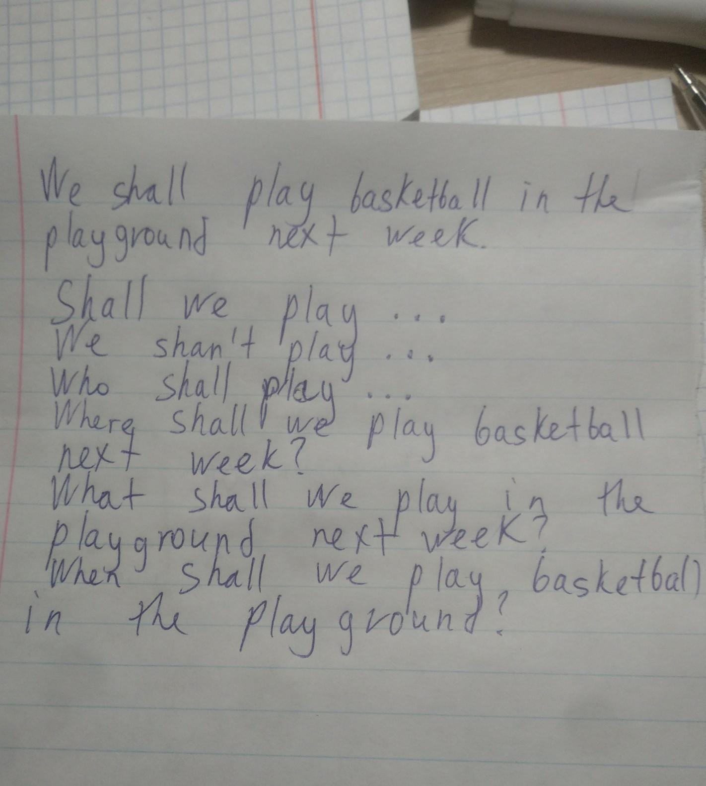 нужно задать вопрос ко всем словам с общим вопросам помогите пожалуйста We shall play basketball in the playground next week