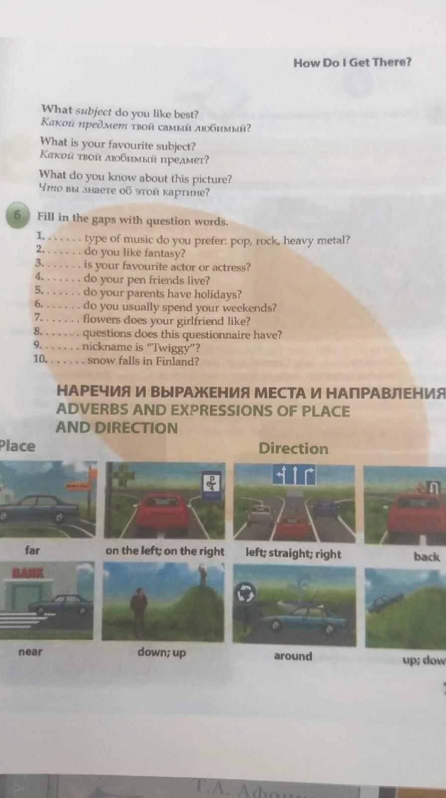 6. How do you usually spend your weekends? (Как ты обычно проводишь выходные?) - I do my homework, help my mum to tidy up, watch a film or read a book and go for a walk with my friends. (Я делаю домашнее задание, помогаю маме прибраться, смотрю какой-нибудь фильм или читаю книгу и хожу гулять с друзьями.)