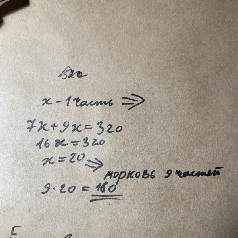 площадь огорода фермера Ивана составляет 320м^2 и распределена на две части для посадки свёклы и моркови в отношениях 7:9 соответственно. Сколько квадратных метров занимает площадь, отведённая Иваном для посадки моркови