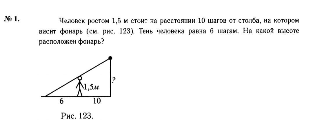 человечек, назовём его высоту ВМ, равен 1.5 метров