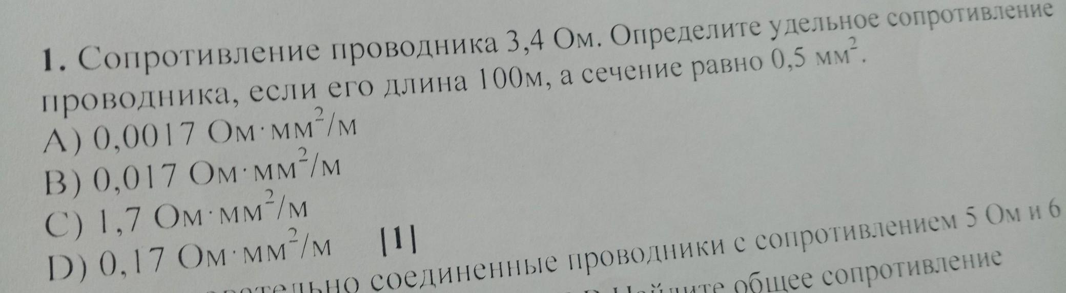 сопротивление проводника 3, 4Ом Определите удельное сопротивление проводника если его длина 100м ,а сечение