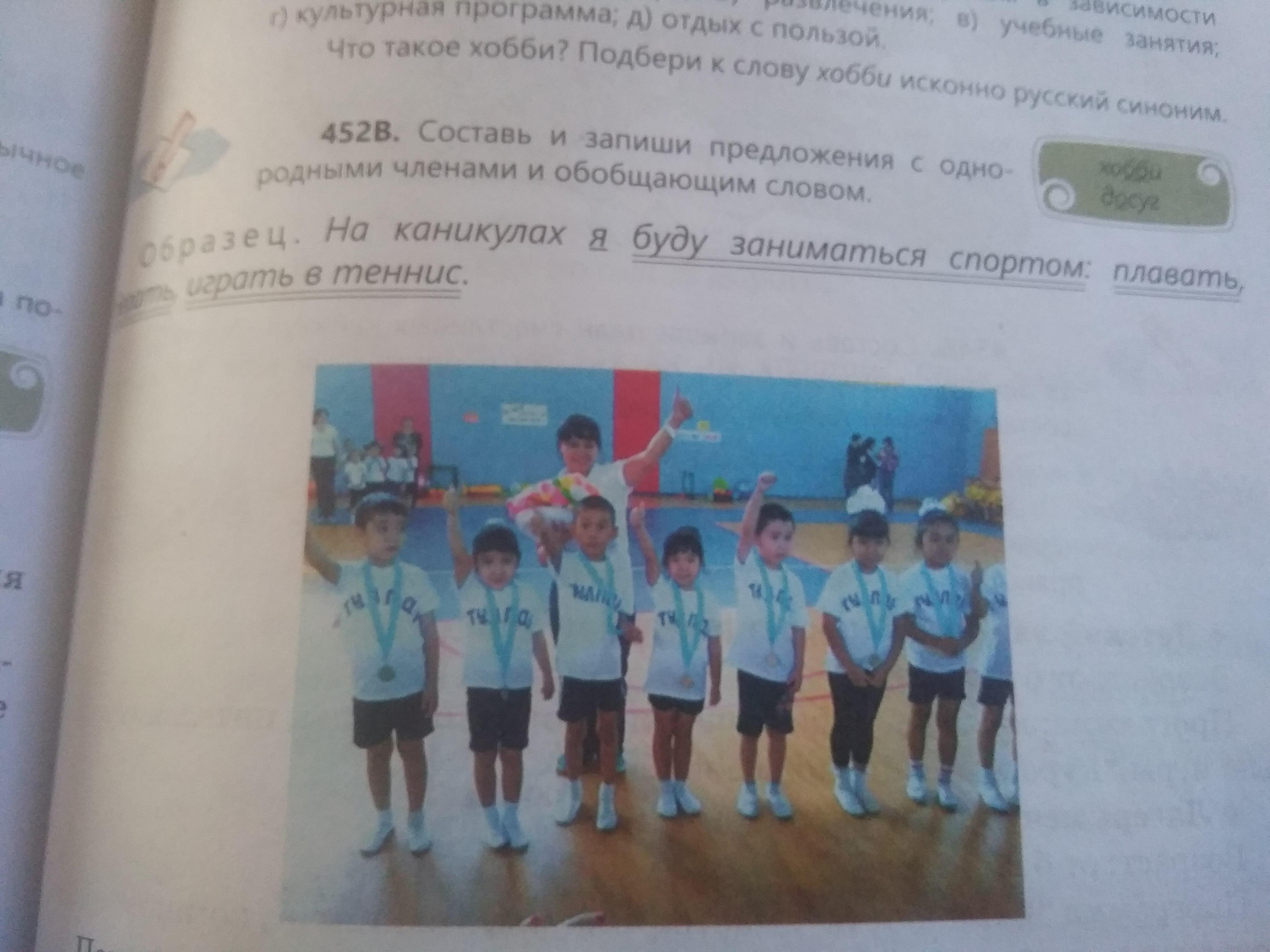452В. Составь и запиши предложения с однородными членами и обобщяющим словом