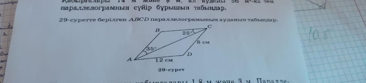 Найдите площадь параллелограмма ABCD, изображенного на рисунке на помогите пожалуйста! Дам 35 баллов