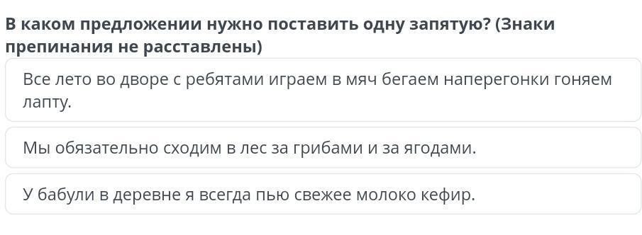 В каком предложении нужно поставить одну запятую? (Знаки препинания не расставлены)