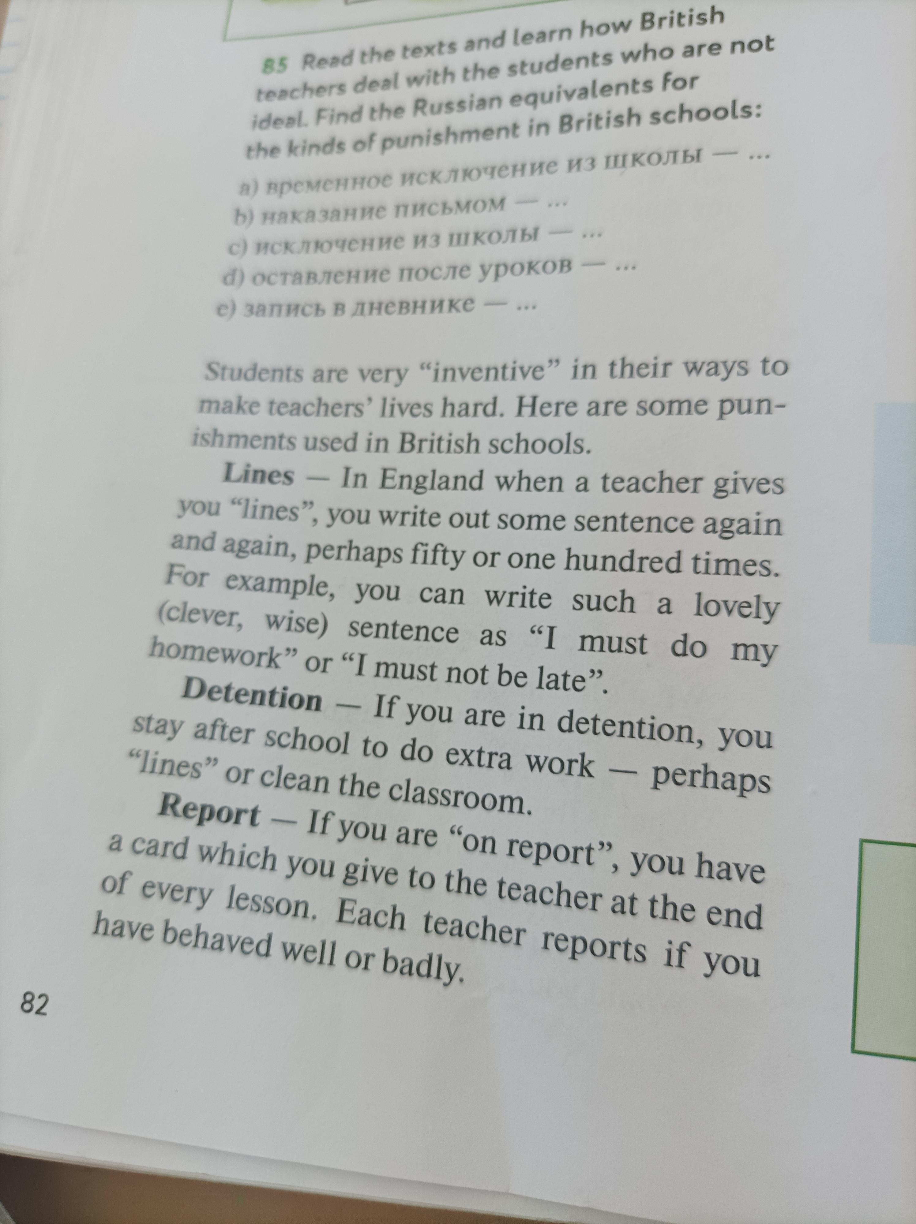 Строки - в Англии, когда учитель дает