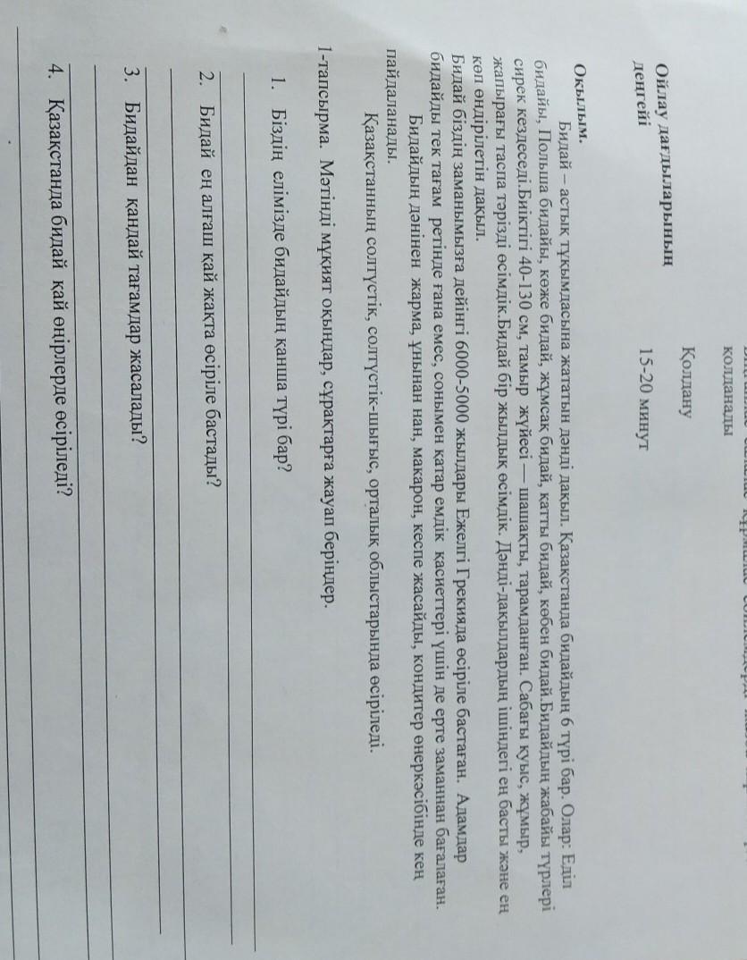 Ответ: 1. Бидайдың алты түрі бар.