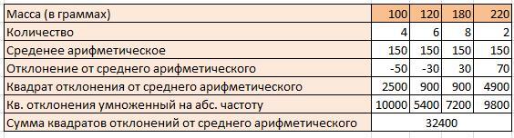 Сумма квадратов отклонений от среднего арифметического составляет 32400.
