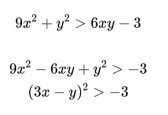 Левая часть неравенства всегда будет положительным для всех действительных х,у,а правая - отрицательное число, это значит, что положительно число всегда больше отрицательного числа.