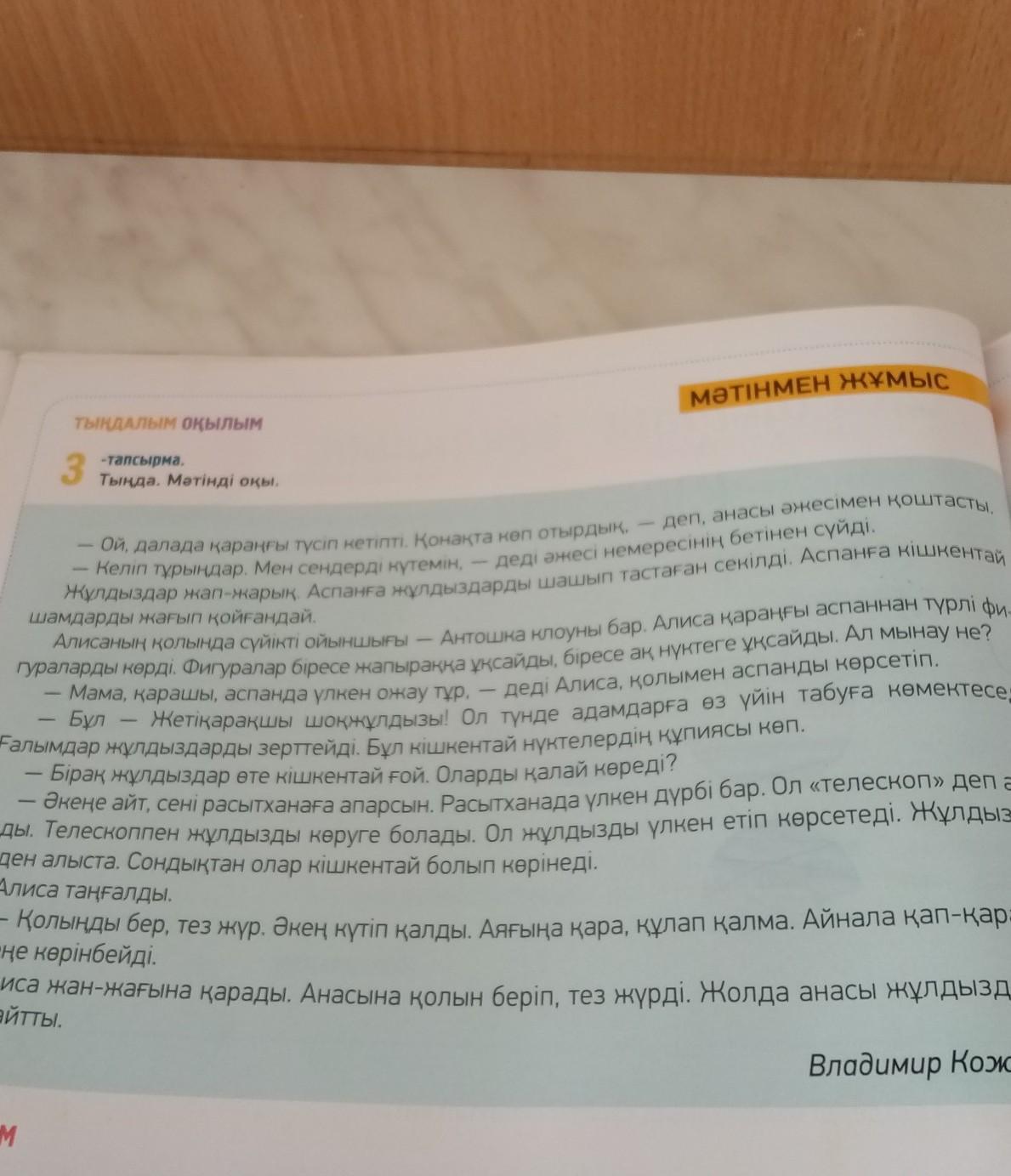 4. Алиса түнгі аспанда не көрді?5.Анасы Алисаға не айтты?