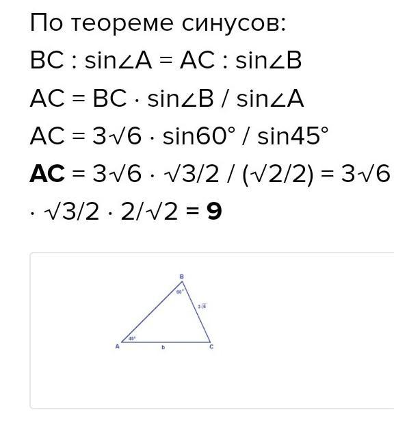 в треугольнике авс угол с равен 45 градусов угол а равен 60 градусов бс 12 корень 6 найдите ас с рисунком