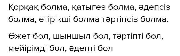 33. Сызба бойынша сипаттау мәтінін құрап жаз, қорқақ қатыгез өтірікші тәртіпсіз әдепсізболма. Тәртіпті мейірімді әдепті шыншыл өжет бол. Көмектесін дерші