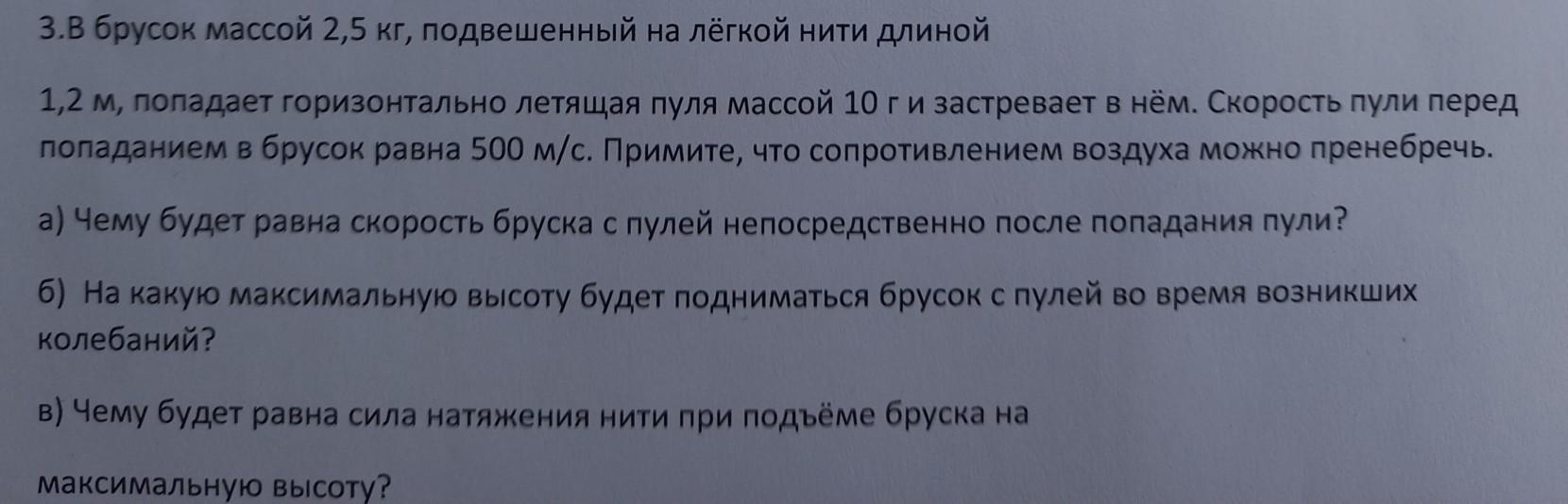 б) максимальная высота, на которую поднимется брусок с пулей при возникших колебаниях