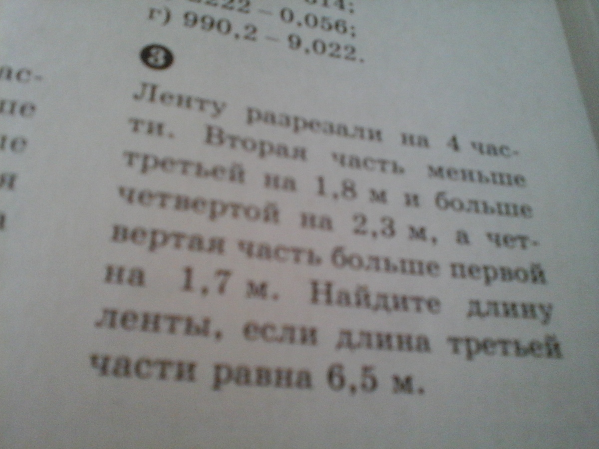 пусть куски ленты будут обозначены х1, х2, х3, х4, тогда по условию задачи можно сделать следующие равенства