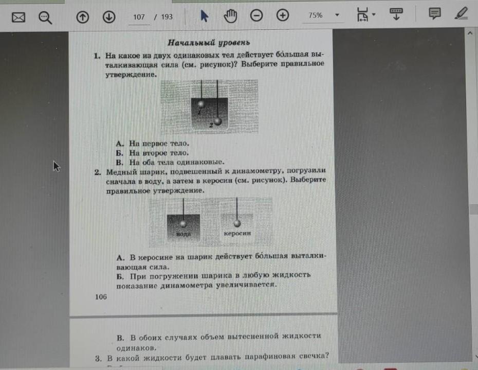 в первом потому что глубина на архимедову силу не влияет
