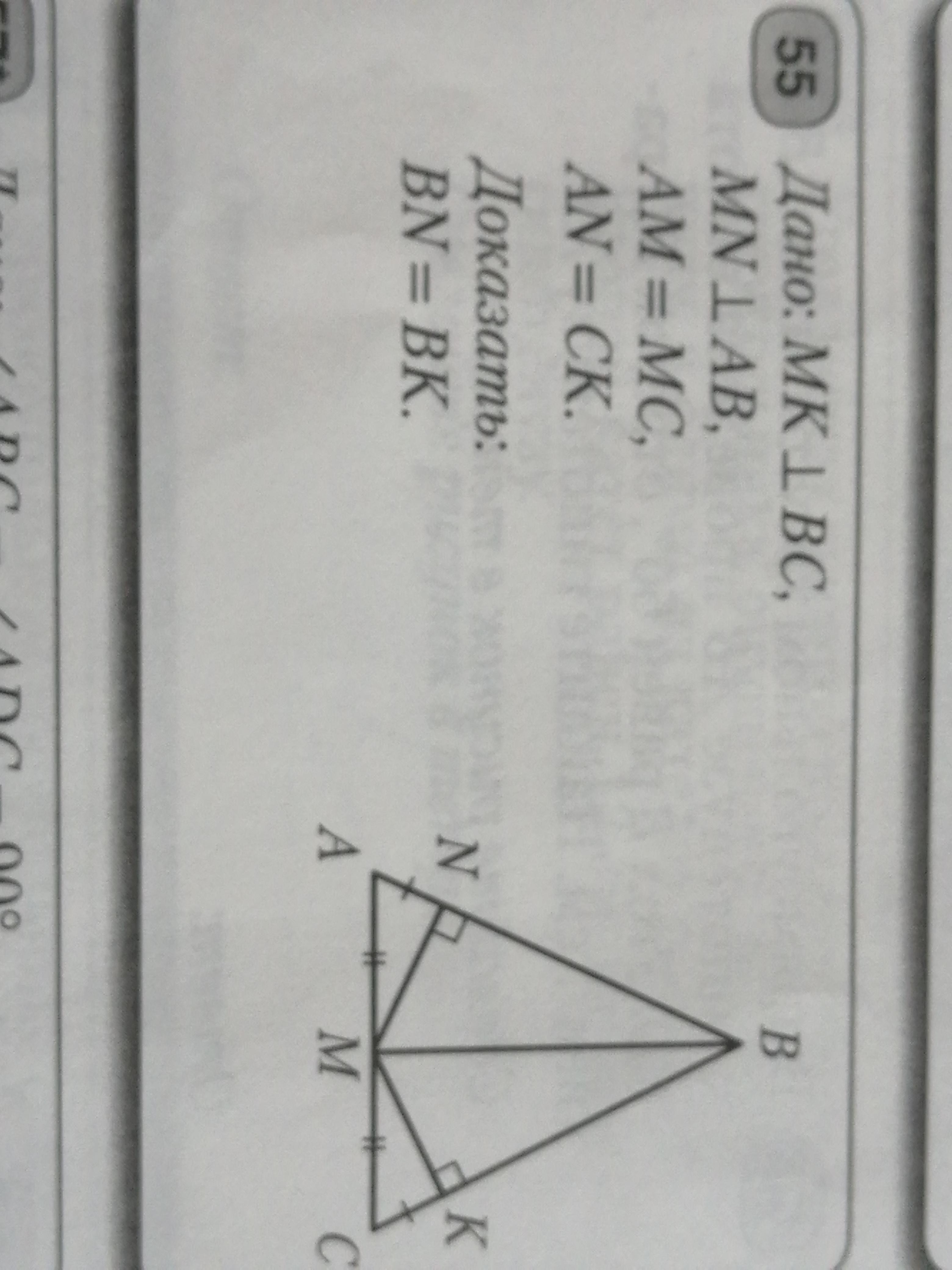 3) Рассмотрим тр. NBM и тр. KBM: <BNM = <BKM (т.к. MK и MN - высоты), NM = MK (по доказанному), MB - общая ----> тр. NBM = тр. KBM (по двум сторонам и углу между ними) ----> BN = BK, ч.т.д.