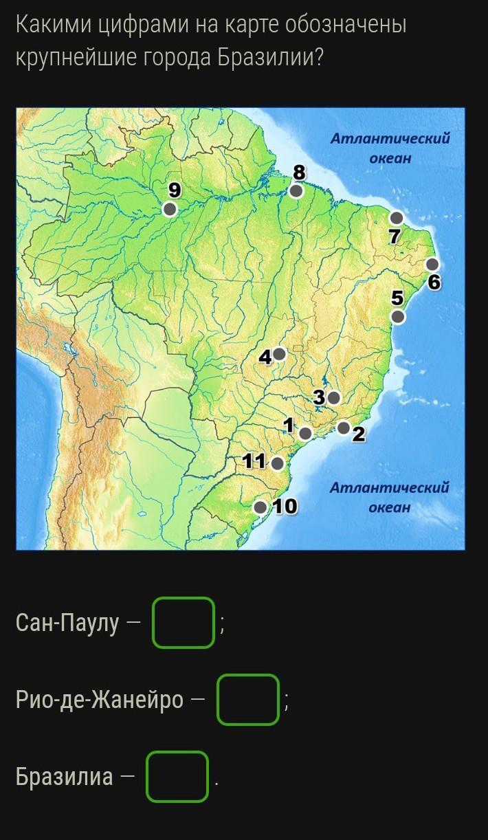 Ответ: Рио-де-Жанейро — 2; Сан-Паулу — 1; Бразилиа — 4.