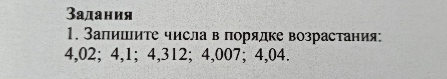 Запишите числа в порядке возраста станция: 4,02; 4,1; 4,312; 4,007; 4,04.