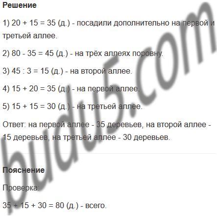 20 На трёх аллеях парка посадили 30 деревьев. На первой аллее посадили на 20 деревьев больше, чем на второй а на второй на 15 деревьев меньше, чем на третье аллее. Сколько деревьев посадили на каждой аллее? объясни выполненные действия. Закончи решение задачи: