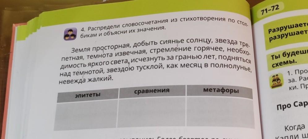 Эпитеты:земля просторная, звезда трепетная, темнота извечная, стремление горячее, невежда жалкая, звездою тусклой