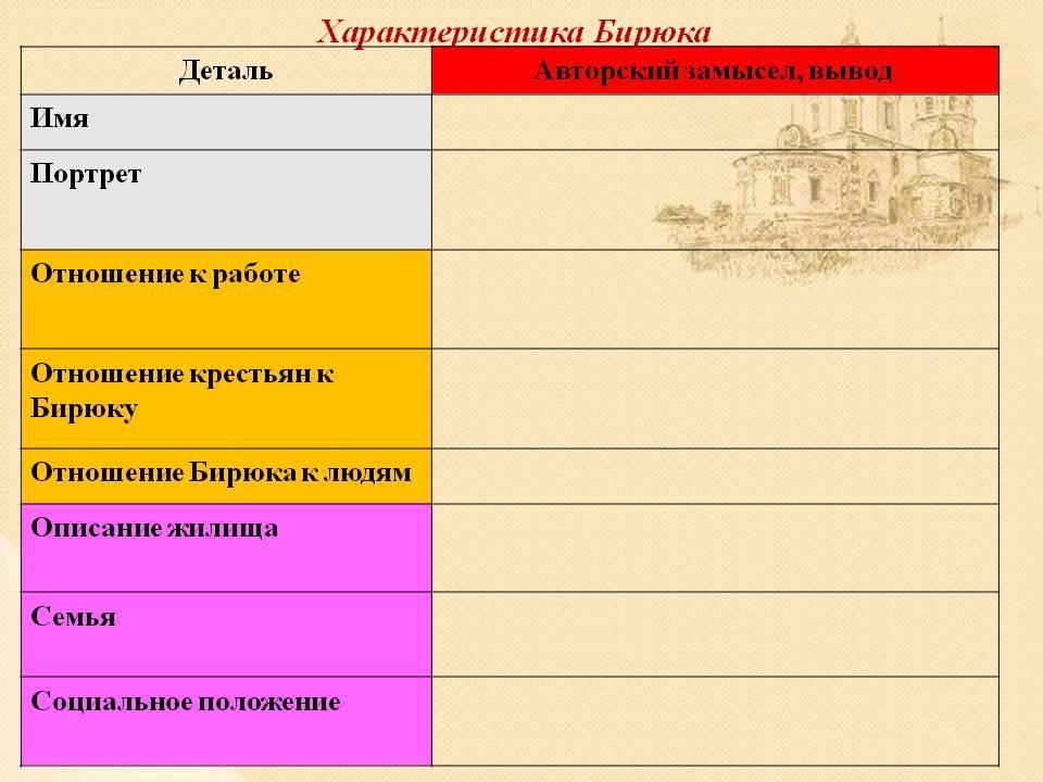 Отношения Бирюка к людям - К службе своей Бирюк относится бережно и трепетно: его нельзя было подкупить ни вином, ни деньгами, ни приманками. За такое справедливое и добросовестное отношение к работе и к лесу мужики недолюбливали Бирюка, желая его «сжить со свету». Однако несмотря на это, окружающие подтверждали талант Бирюка, называя его настоящим «мастером своего дела». То, что Бирюк не берет взятки, говорит о том, что он привык обеспечивать свою семью честным трудом, несмотря на то что получает он совсем немного.