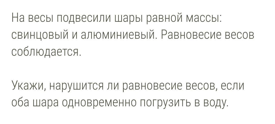 До погружения в воду весы находились в равновесии, так как на них действовали равные силы тяжести равные силы натяжения нити