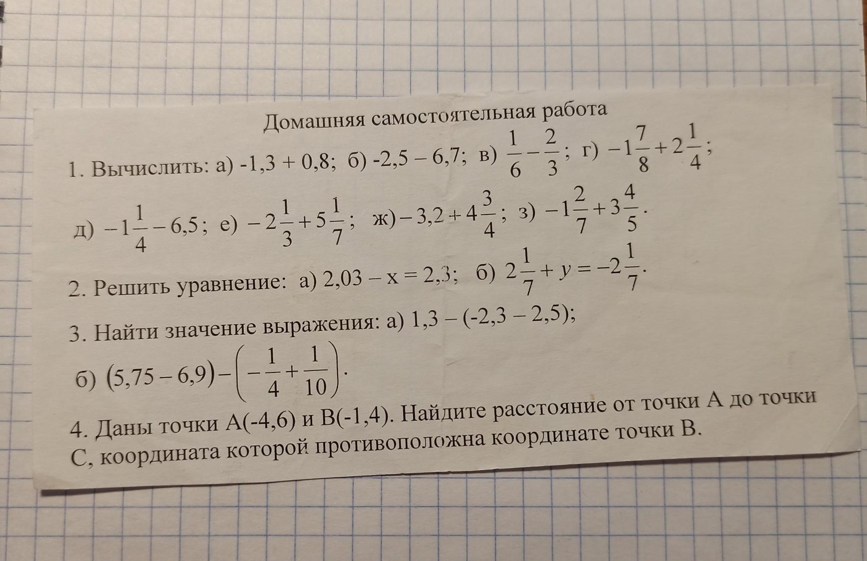 а) 1,3-(-2,3-2,5)= 6.1