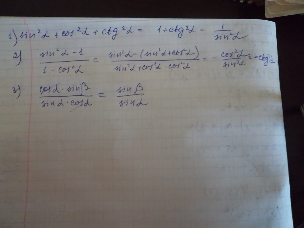 1) sin^2a+cos^2a+ctg^2a=1 +ctg^2 a=1/(sin²a)