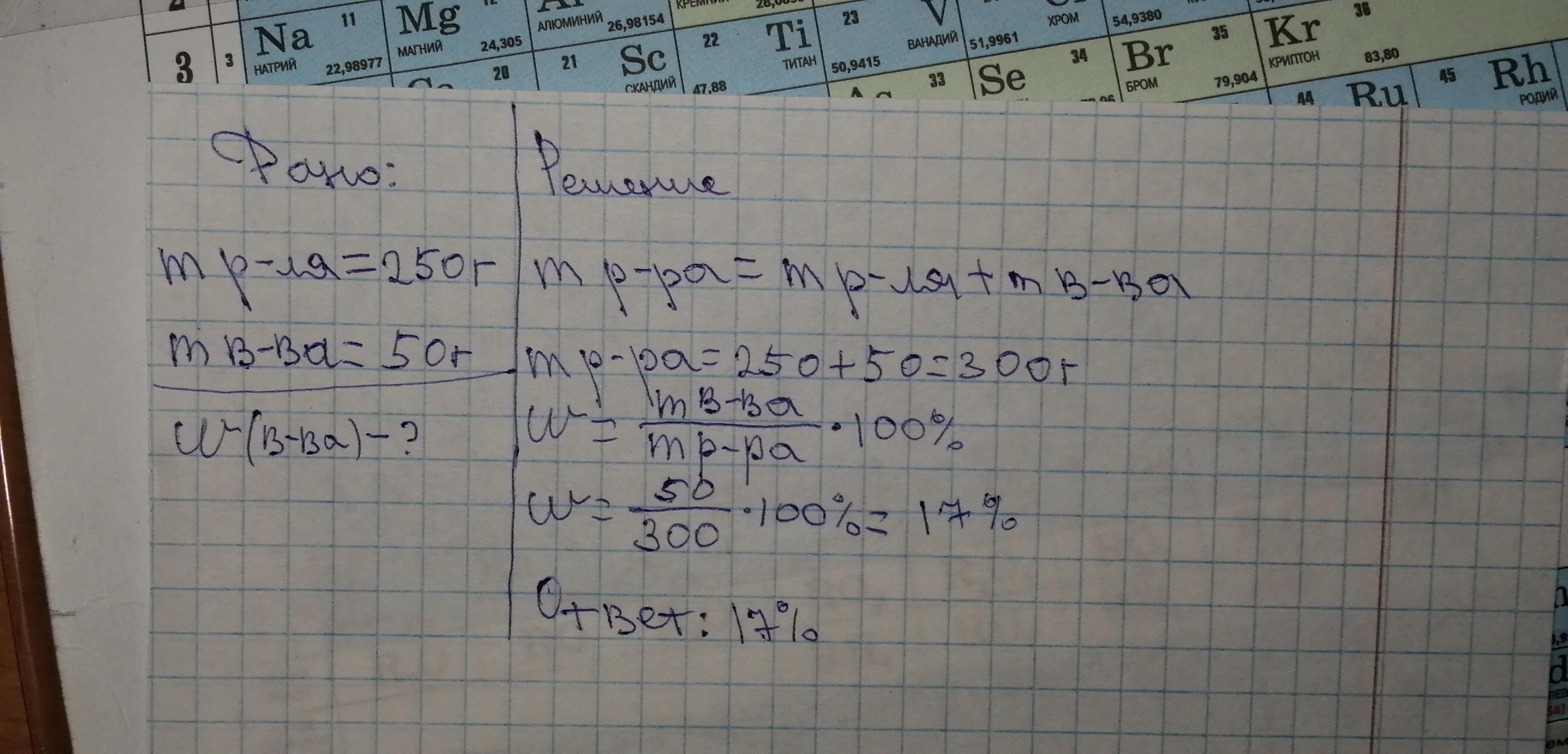 В 250 г воды растворили 50 г сахара. Вычеслите массовую долю (в %) сахара в полученном растворе Химия 8 класс СРОЧНО НУЖНО!!