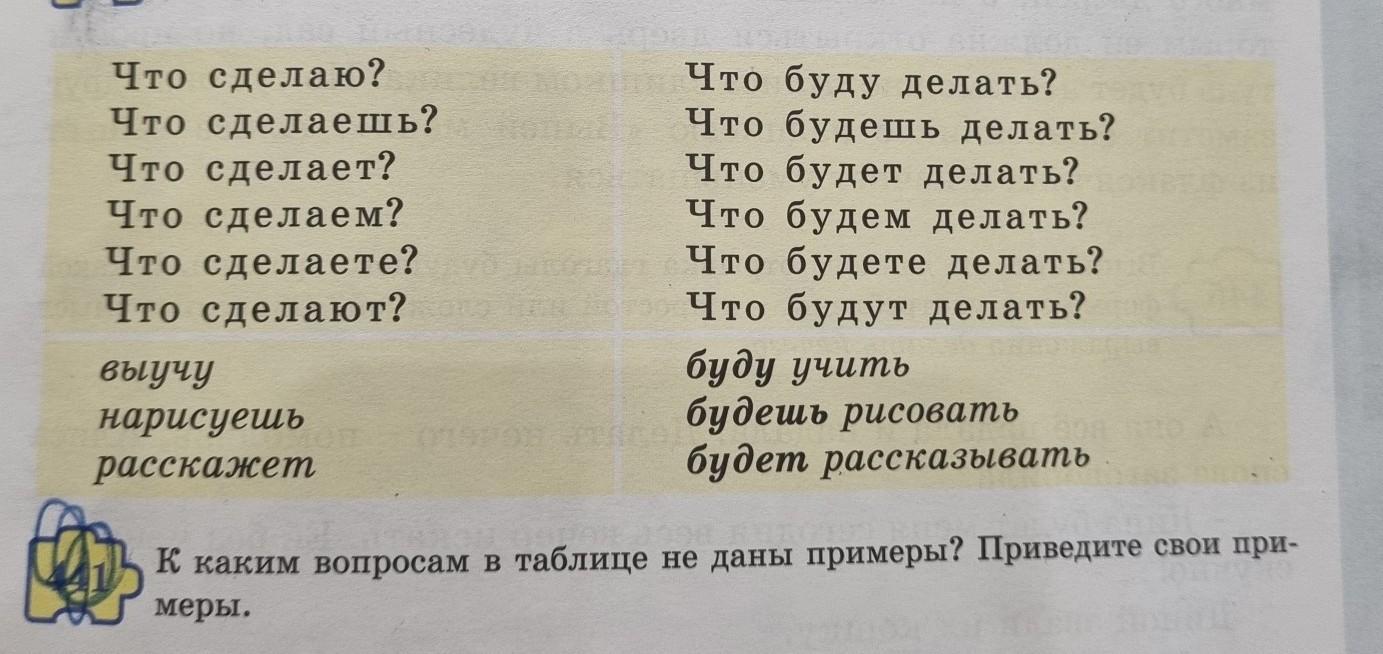 441К каким вопросам в таблице не даны примеры? Приведите свои при- меры.