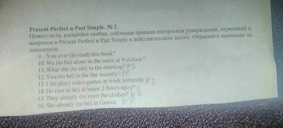 пожалуйста раскройте скобки и соблюдая правила построения утверждение отрицание и вопрос в present perfect и past simple в действие действительном залоге обращайте внимание на показатели 9) You ever (to read) this book? 10)We (to be) alone in the room at 9o'clock?....