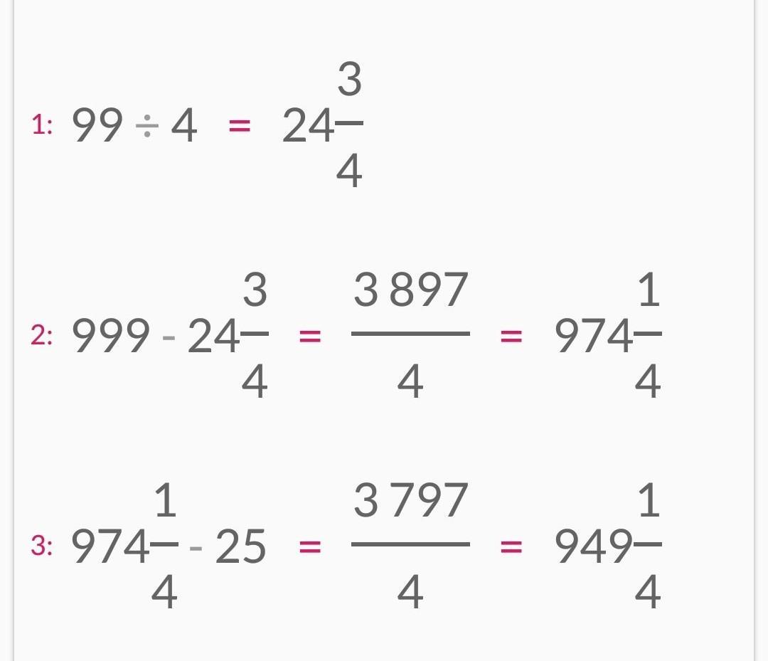 999-99:4-25=949,25 правильный ответ с решением