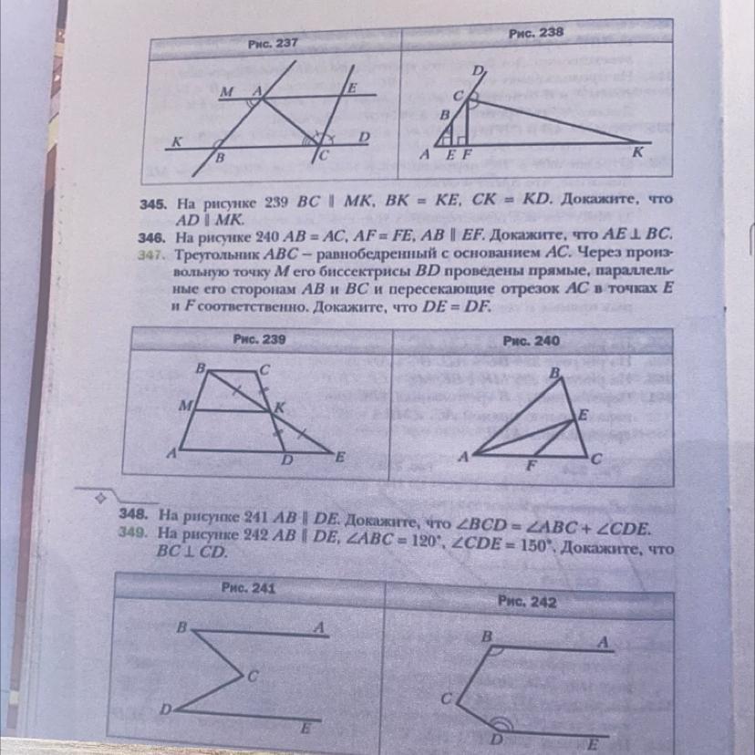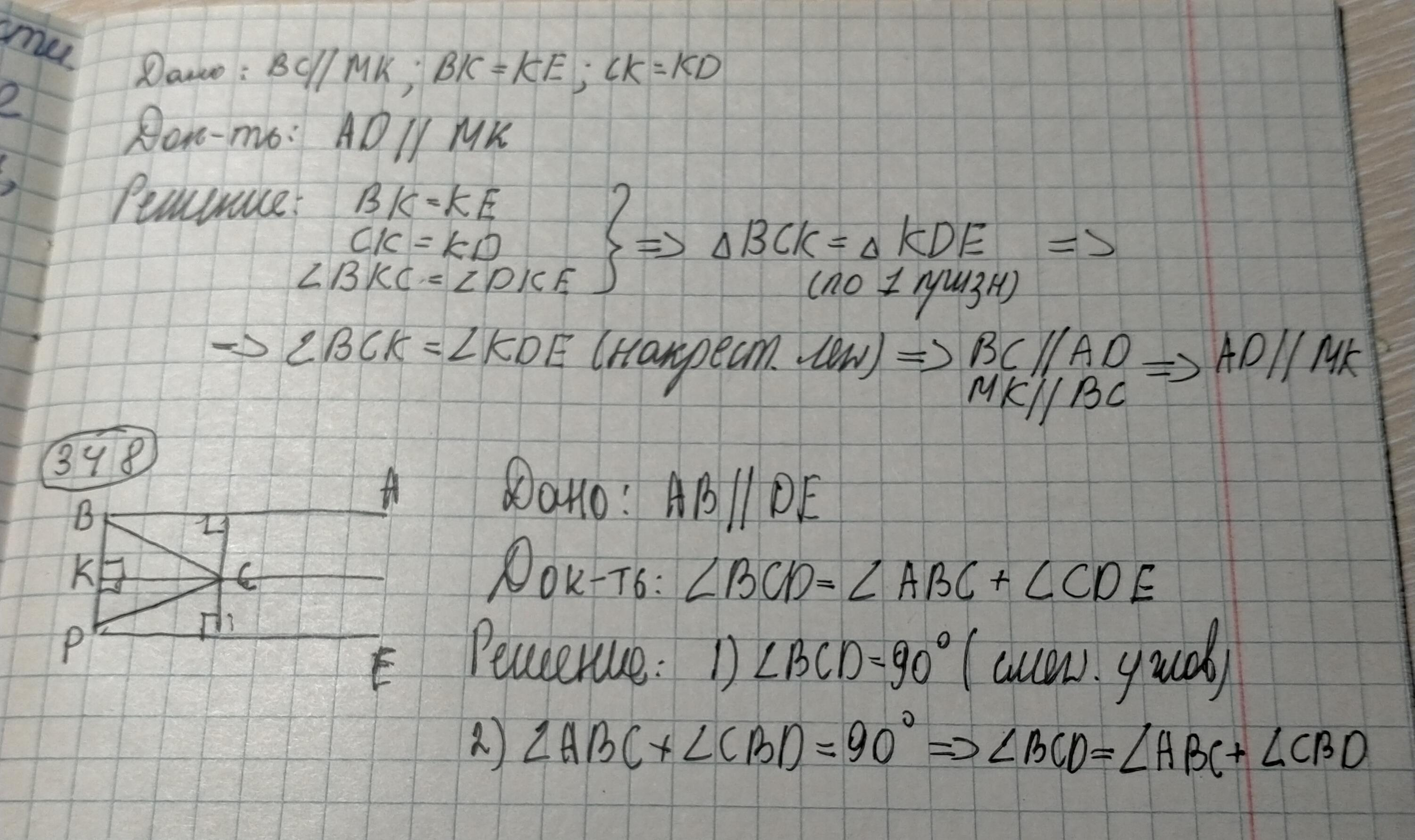 А что написано в 349 в 1) в скобках? Смежн углы???
