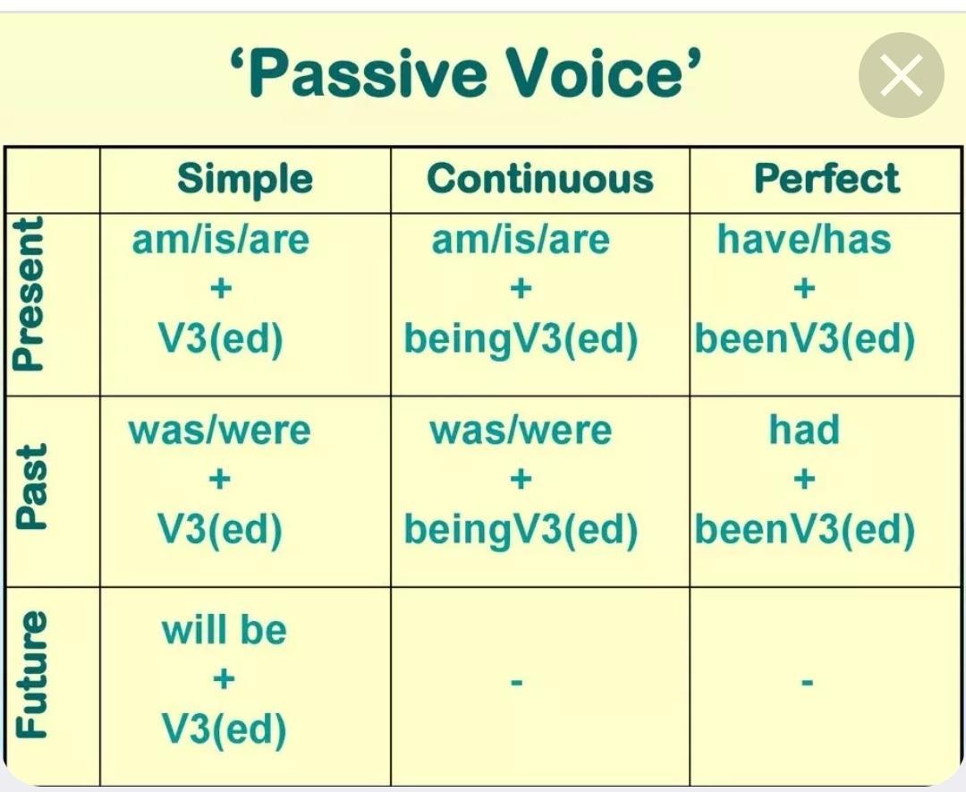 Пассивный залог образуется с помощью вспомогательного глагола «be» и формы Past Participle (смыслового глагола в 3 форме). См.картинку