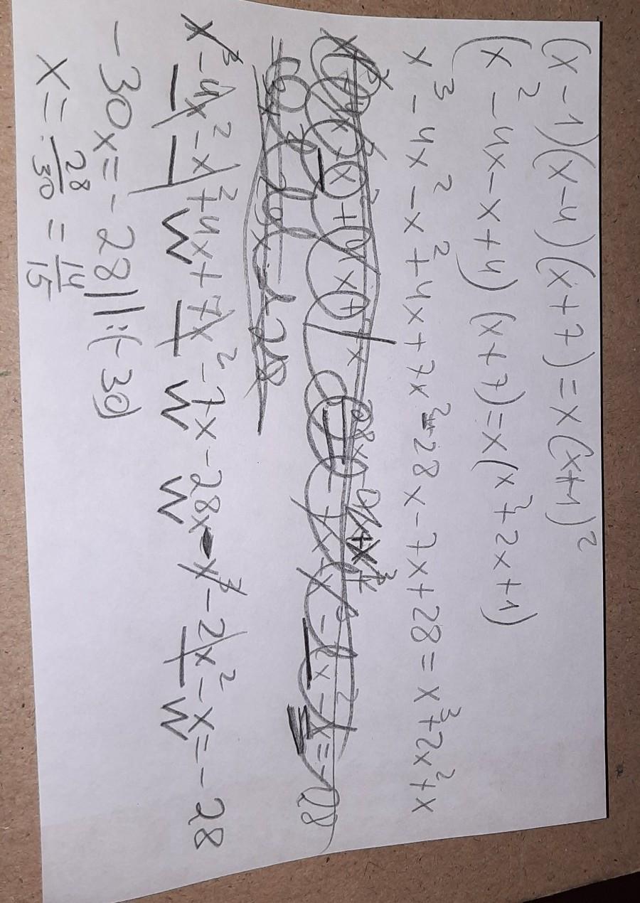 б) (x-1)(x-4)(x+7)=x(x+1)^2