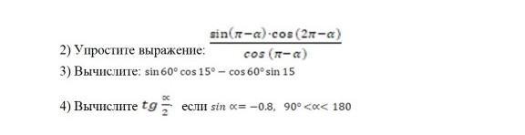 Пользуемся формулами приведения в 1 примере и формулой синуса разности во 2 примере .