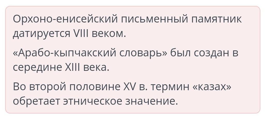 Завершение процесса формирования казахского народа. Урок 2 обретение термином «казах» этнического значения орхоно-енисейский письменный памятник «Арабо-кыпчакский словарь» (。•́︿•̀。)