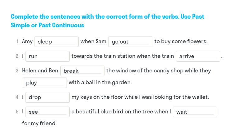 Complete the sentences with the correct form of the verbs. Use Past Simple or Past Countinuous