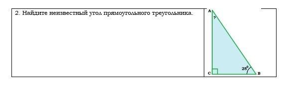 2. угол с + угол а + угол в = 180 градусам (по теореме треугольников) => угол а = 180 - 90 - 25 = 65 градусов.